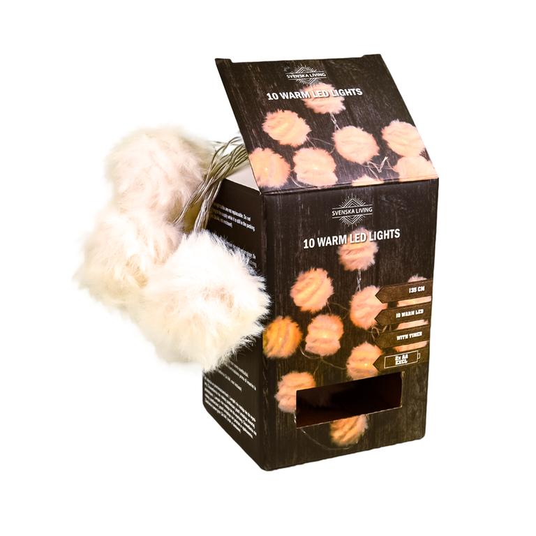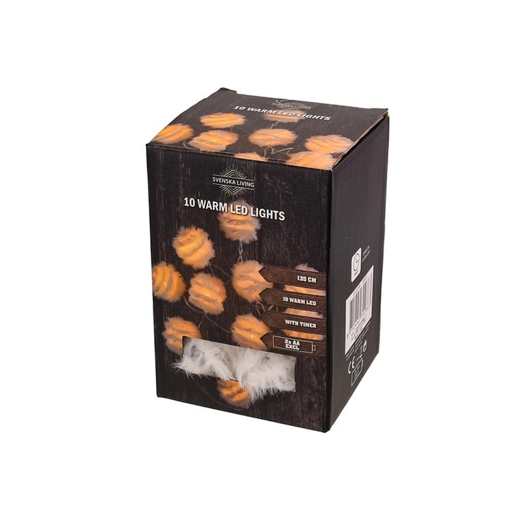 Vianočná svetelná reťaz 10 LED gule pierka s časovačom