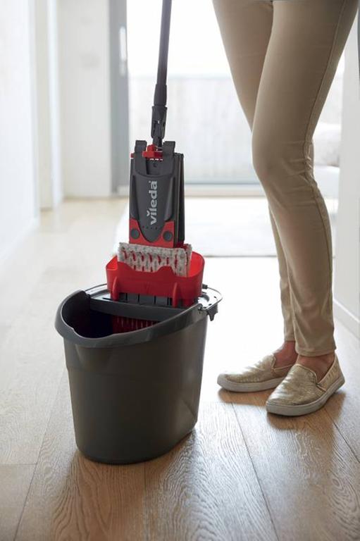 Set v krabici obsahuje Ultramax mop a vedro so žmýkacím košom. Ultramax mop: mikroaktívne vlákna pohltia a zotrú mastnotu a šmuhy. Power zóna až 10× zvýši tlak oproti bežnému plochému mopu a odstráni špinu omnoho ľahšie. Vhodný na všetky typy tvrdých podláh: PVC, plávajúce podlahy, parkety, dlažba. Umývací návlek je možné prať v práčke na 60 °C, nepoužívajte aviváž ani sušičku. Ultramax vedro so žmýkacím košom: Úplne nová technológia žmýkania power press. Unikátny systém lamiel znižuje námahu počas žmýkania až o 30 %. Trojdielna skrutkovacia tyč, maximálna dĺžka 120 cm. Rozmer hlavice: 36×14 cm.