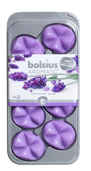 Vonné vosky Bolsius - balenie 8 ks. Vosky sa používajú do aromalámp namiesto vonných olejov. Vôňa levandule - upokojujúci vánok z levanduľových polí v Provence. Farba fialová.