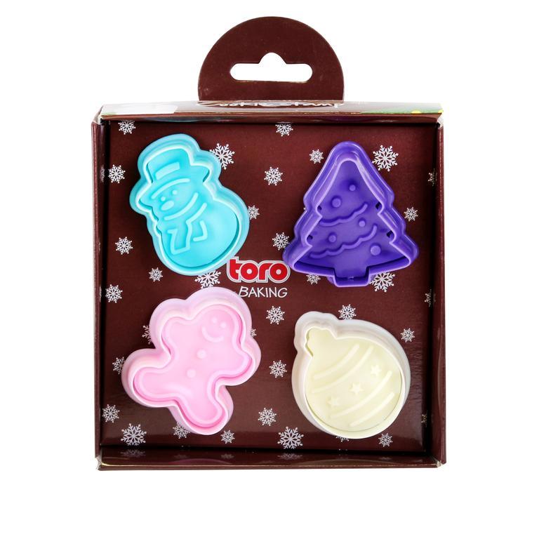 Pečiatky na cukrovinky s vianočnými motívmi. Materiál - plast. Pečiatku jednoducho vytlačíte do cesta pri pečení cukroviniek. Balenie obsahuje 4 ks rôznych motívov - medovníček, stromček, snehuliak, vianočná guľa. Rozmery - 5 x 5 cm.
