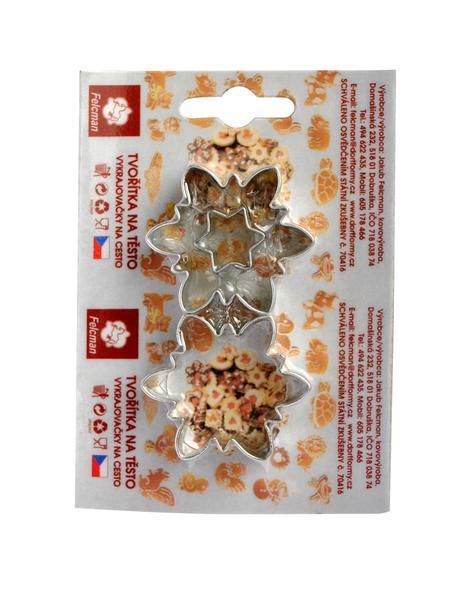 Sada formičiek 2 ks - tvar ruže a ruže s hviezdičkou vo vnútri. Vhodné na cukrovinky, medovníčky, poťahové alebo modelovacie hmoty. Vykrajovače sú od českého výrobcu a spĺňajú všetky predpísané normy. Vyrobené z pocínovaného plechu. Priemer oboch ruží je 4,3 cm.