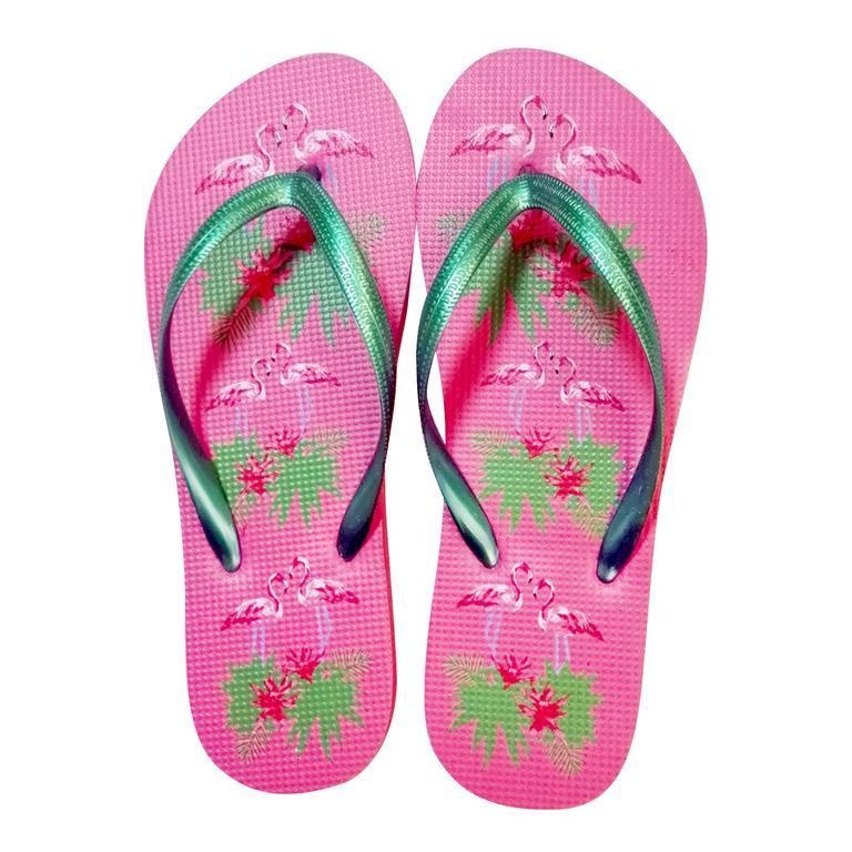 Dámske žabky s veľmi obľúbeným motívom "Plameniaky". Žabky sú pohodlná obuv na horúce letné dni, k vode, ale aj na bežné nosenie. Veľkosť EU 40. Dĺžka 26,6 cm. Assort farieb.