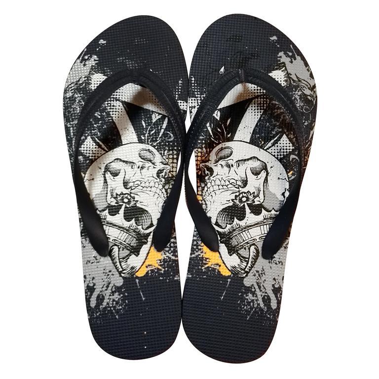 Pánske žabky s rôznymi motívmi. Žabky sú pohodlná obuv pre horúce letné dni, k vode, ale aj na bežné nosenie. Veľkosť EU 43. Dĺžka 28,7 cm. Assort farieb a motívov.