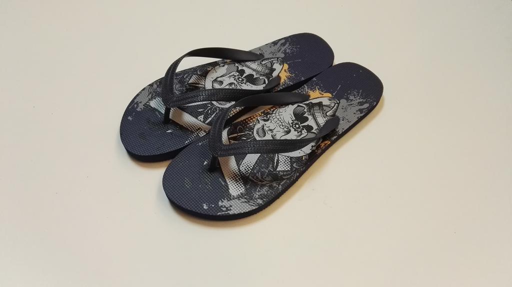 Pánske žabky s rôznymi motívmi. Žabky sú pohodlná obuv pre horúce letné dni, k vode, ale aj na bežné nosenie. Veľkosť EU 44. Dĺžka 29,3 cm. Assort farieb a motívov.